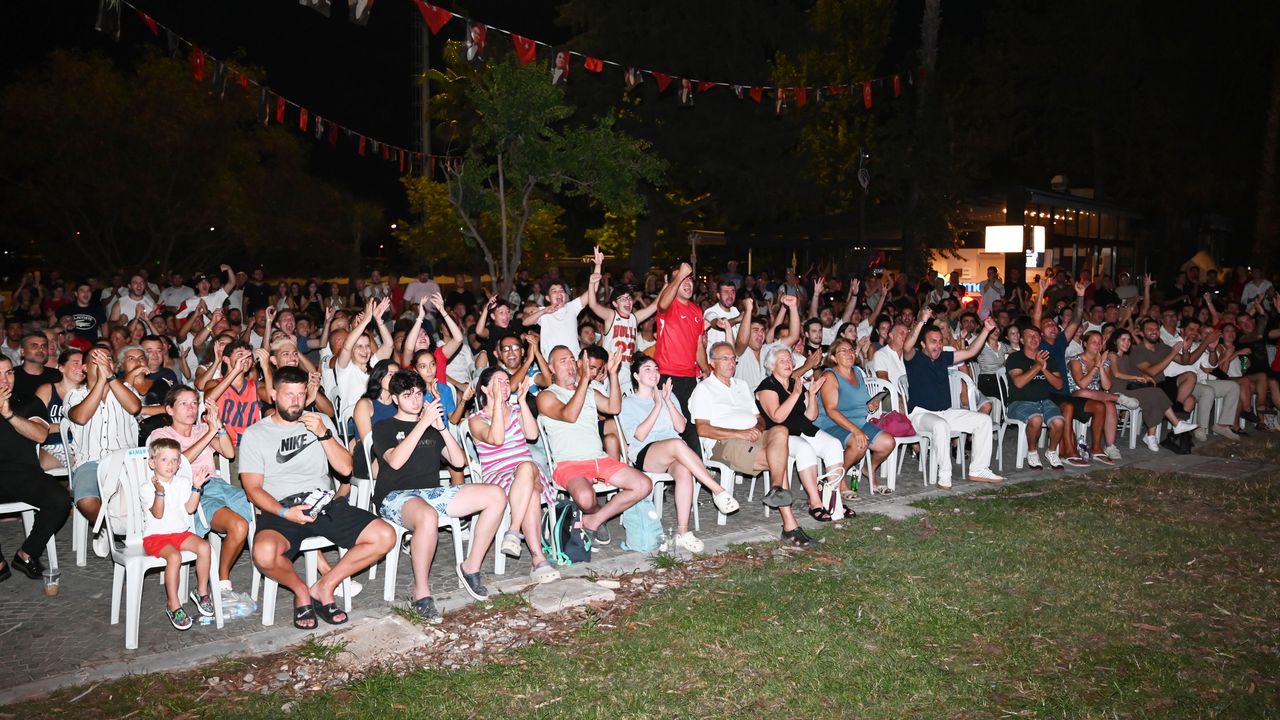 Dev ekranda maç keyfi yaşayan vatandaşlar, 12 Dev Adam’ın her attığı basketi alkışlayarak milli takıma destek oldu. İlçede tatili sürdüren yerli ve yabancı misafirler de dev ekrandaki maç keyfini cep telefonlarıyla görüntüledi.